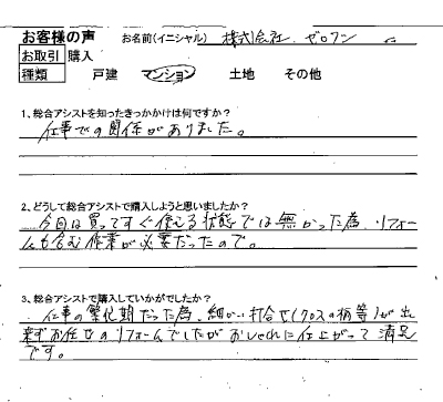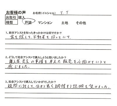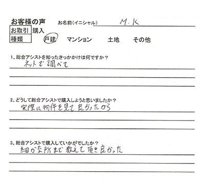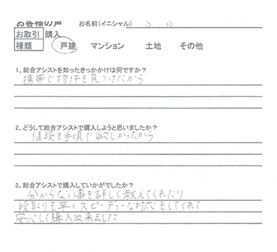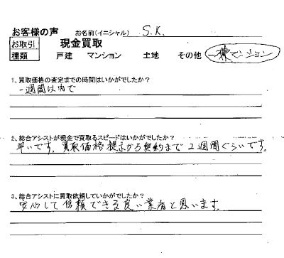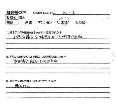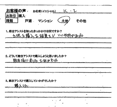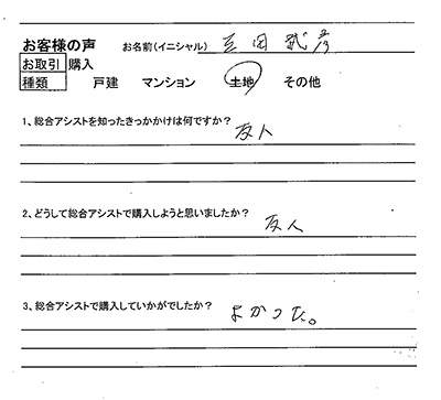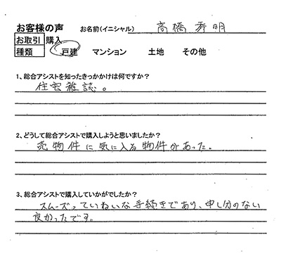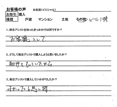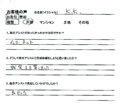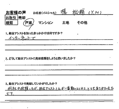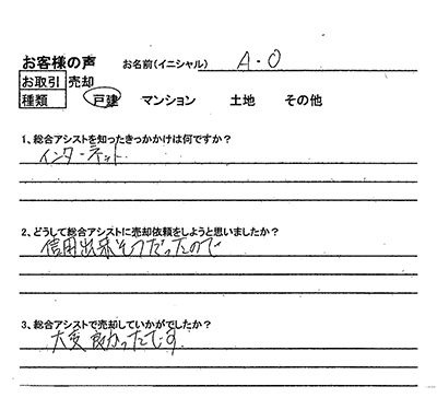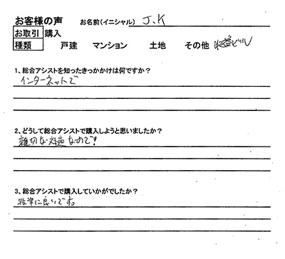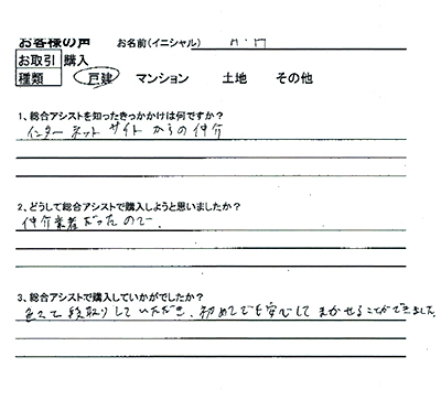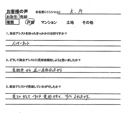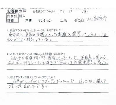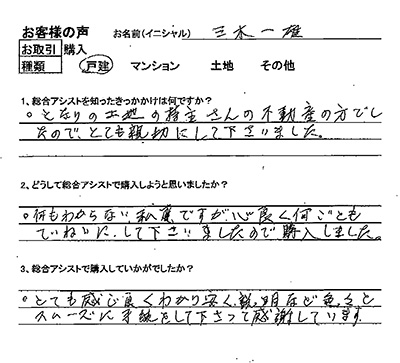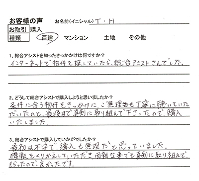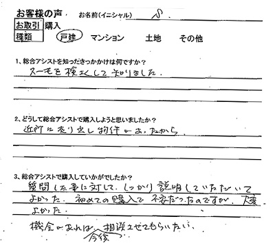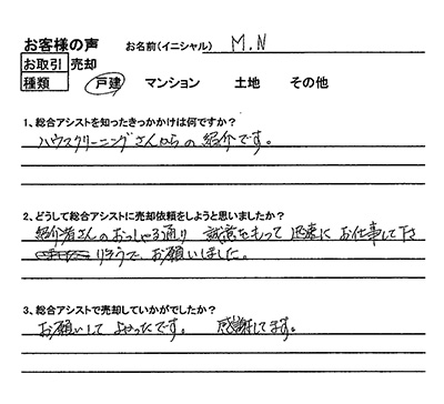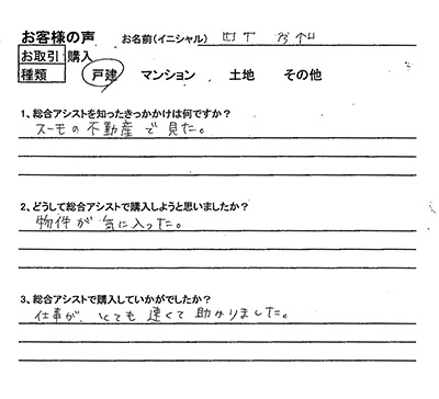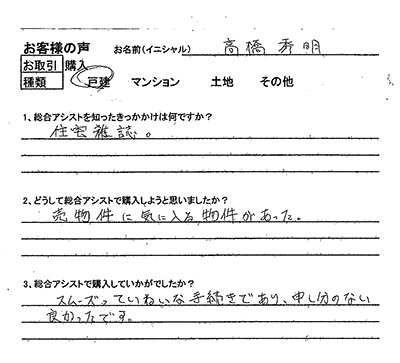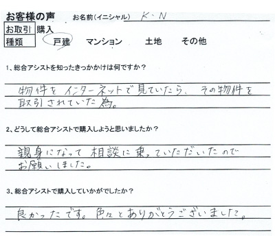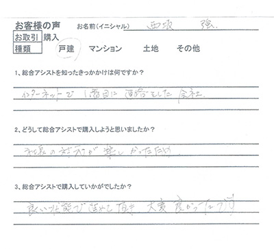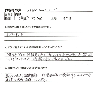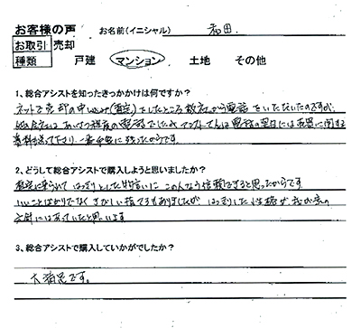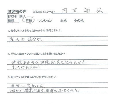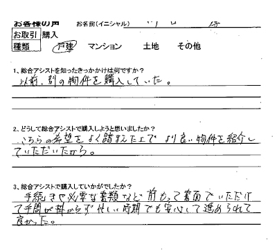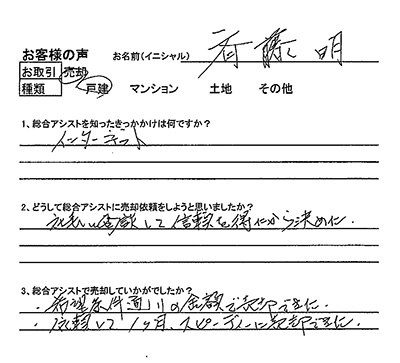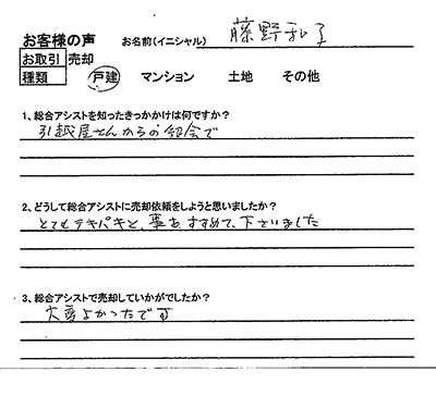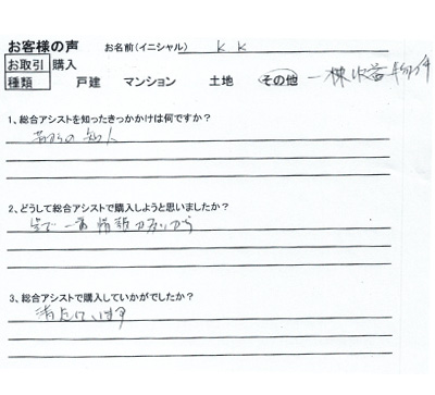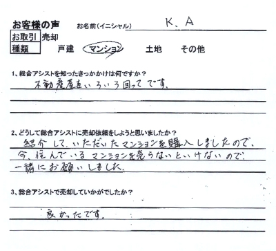 広島県呉市で不動産売買を行っている「株式会社総合アシスト」は、創業以来、地域の皆様から厚い信頼をいただき、呉市でもトップクラスの実績を積み重ねてまいりました。こちらでは、当社を通じて不動産を売却あるいは購入されたお客様の声の一部をご紹介します。一戸建てやマンション、土地、収益物件など、様々な物件の売買実績がございますので参考ください。